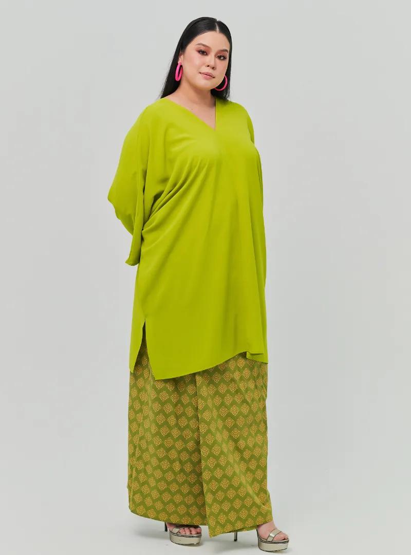Aksen tambahan lipatan kecil di bagian paha kanan membuatmu tampak lebih elegan. Akhiri penampilanmu dengan mengenakan atasan berupa kebaya.